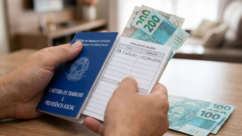O novo salário mínimo de R$ 1.621 começa a ser pago aos trabalhadores brasileiros nesta segunda-feira (2), referente ao mês de janeiro. O valor substitui o piso anterior, que em 2025 era de R$ 1.518.